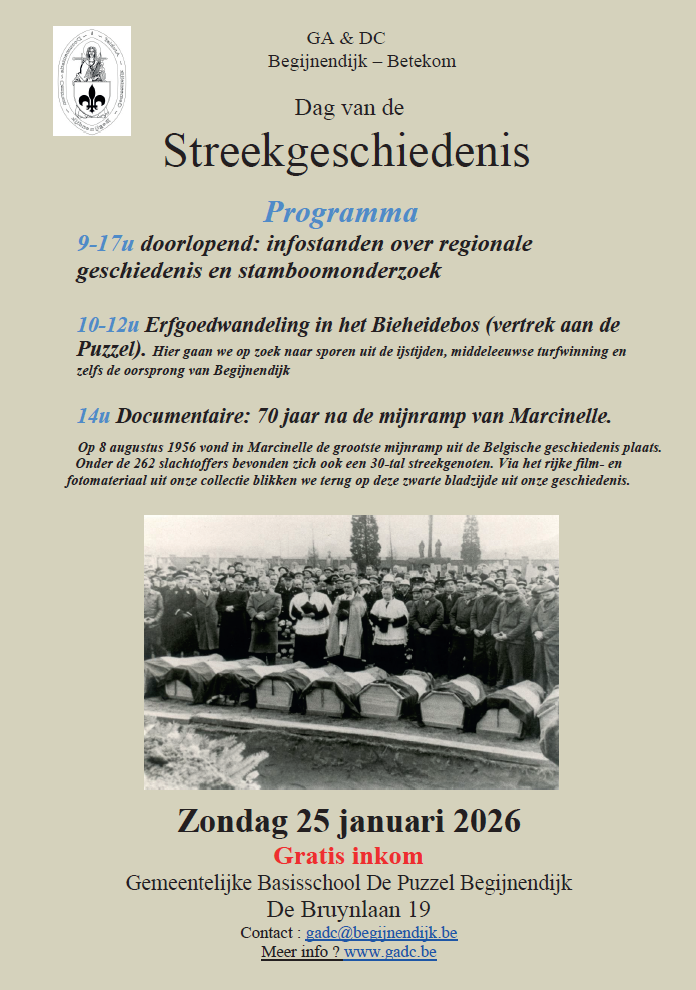 Op zondag 25 januari organiseert GA & DC Begijnendijk - Betekom een stamboomdag in Begijnendijk. Zie de flyer voor meer informatie.